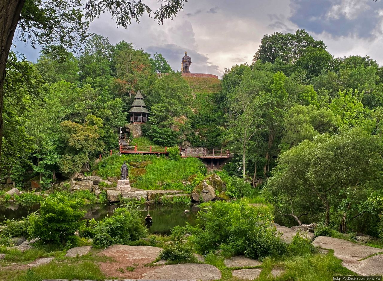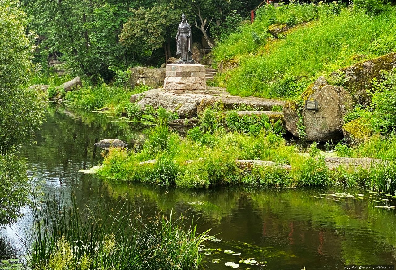 К тому времени эти места уже были включены в состав Киевского княжества. А случилось это примерно десятью годами ранее при непосредственном участии княгини. Все с детства помнят, что Киевскую Русь населяли такие племена, как поляне, древляне... Вот до середины 10 века древляне обитали в Полесье, имели собственное княжество со столицей в Искоротене и платили какую-то дань Киеву, пока местный князь Мал не поднял войско против мужа Ольги, киевского князя Игоря, когда тот пришел брать свою дань... Величественный монумент последнему древлянскому князю Малу высится на высокой скале как раз над Ольгиными купальнями...
