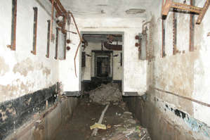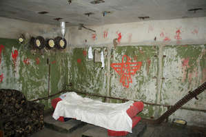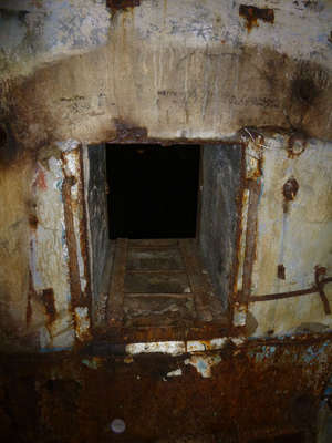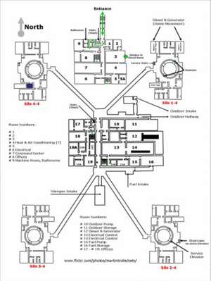 На дне шахты находился стартовый стол для запуска ракеты. Спуститься в шахту, к сожалению, невозможно, — все шахты затоплены, и дно любой шахты можно увидеть лишь со стороны трехэтажного командного пункта управления, соединяющего своими потернами все четыре шахты.