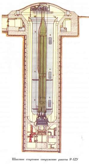 Ракеты Р-12 находились в шахтных пусковых установках уже заправленные топливом, что очень сократило время подготовки ракеты к пуску. До этого ракеты заправляли топливом непосредственно перед пуском. Шахты закрывались бетонными колпаками, которые открывались механическим путем перед пуском. С 1960 года такие ракеты стояли на вооружении СССР и были предназначены для нанесения ядерных ударов по объектам на расстоянии не более 2000 км. То есть это ракеты средней дальности для уничтожения целей в Западной Европе. Разработана ракета Р-12 была в днепропетровском ОКБ, а запущена в серийное производство на машиностроительном заводе в Перми. Конструктор С.Королев называл эту ракету карандашом (при высоте 22 м диаметр ракеты полтора метра)