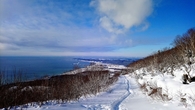 Мы доходим до карьера, после которого начинается пологий подъем. Хочется постоянно оглядываться назад.- такие виды не часто встречаются даже на Сахалине. ...