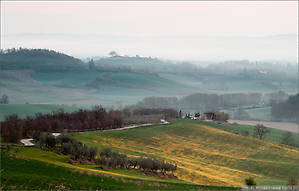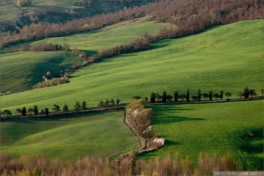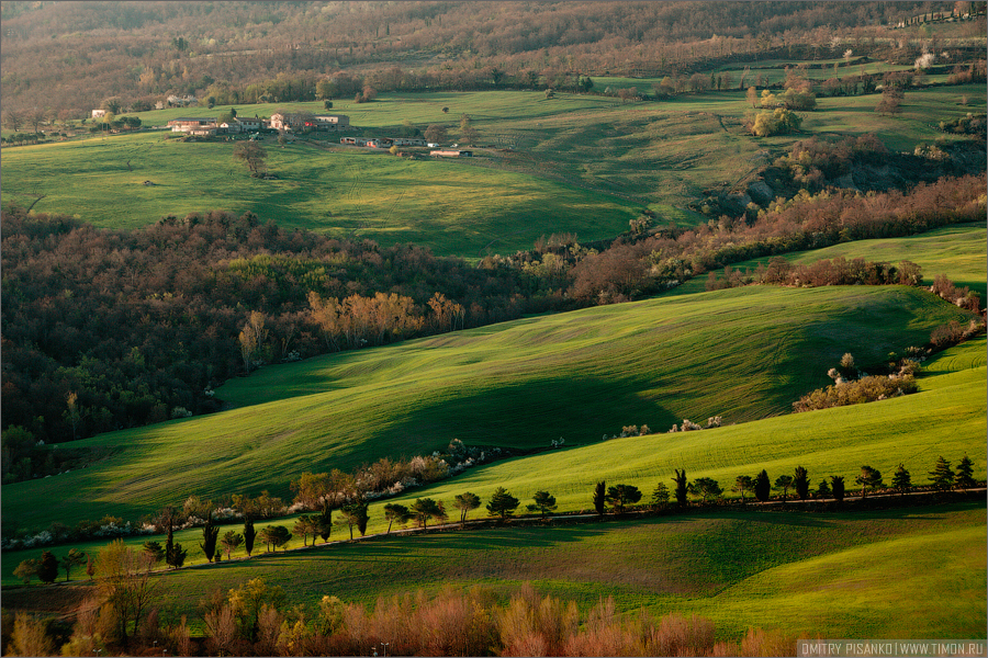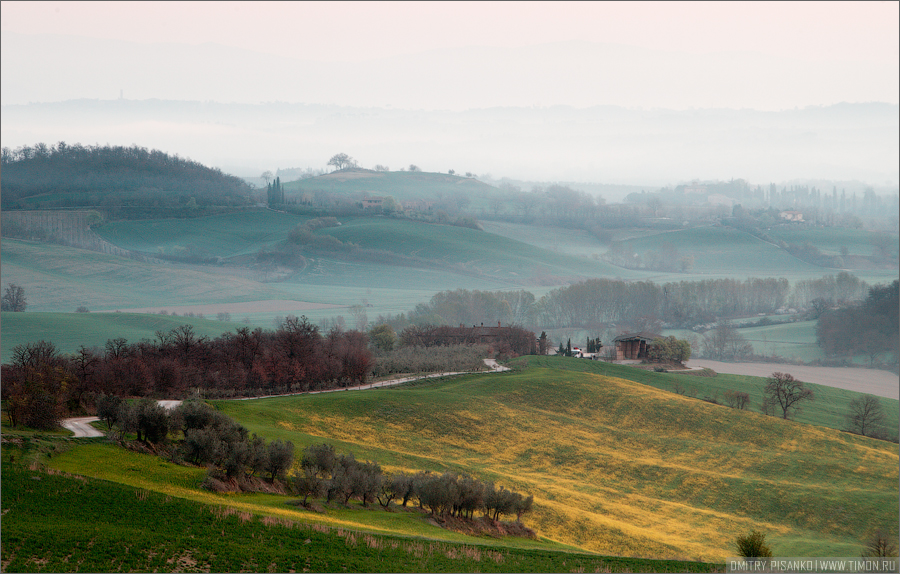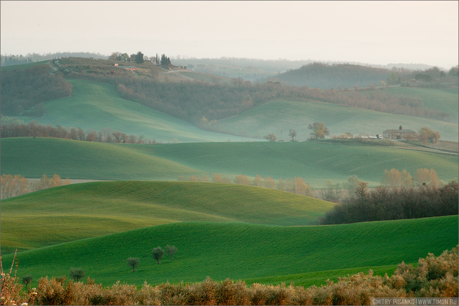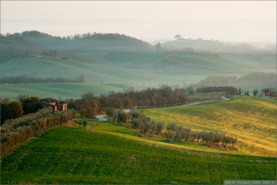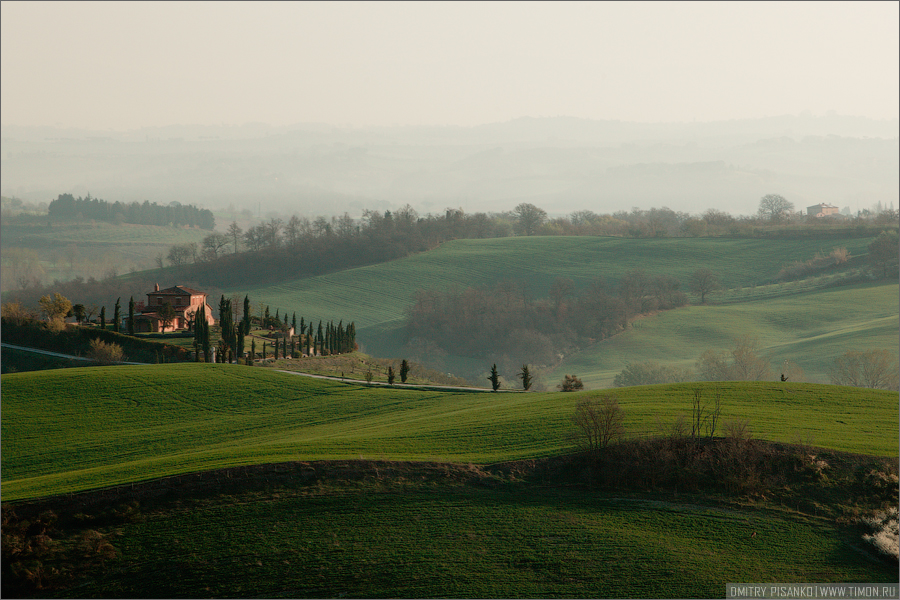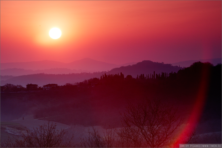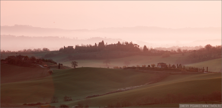 Опять подъем затемно, опять мы едем на рассвет, в общем обычное фототурное утро. Правда приехали сильно рано и солнце еще даже не вышло, потому на улице было так холодно, что мне пришлось одевать свои специальные "пейзажные" перчатки которые я храню в чехле от штатива, померзли зато но зато рассвет был что надо. Я его правда в этот день практически не фотографировал, а снимал на видео, именно с кадров снятых на этом холме начинается мой Тосканский видеоролик.