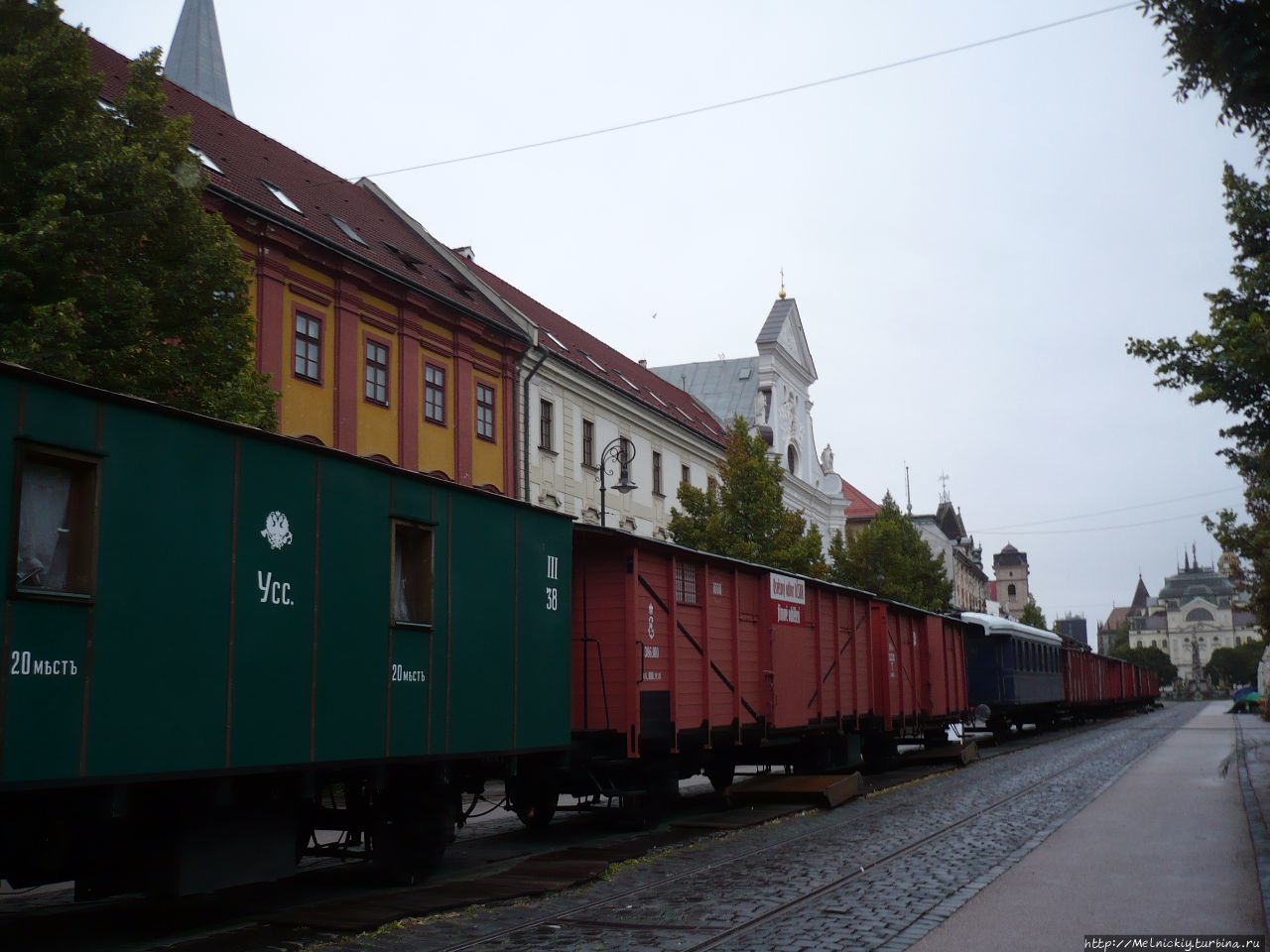Во время прогулки по городу увидел необычное зрелище. Прямо посреди улицы Главной, в центре города, стоял военный эшелон эпохи Первой мировой войны. Оказалось, что это проводится выставка, посвященная чехословацким легионерам, участвовавших в боях на полях Первой мировой войны и Гражданской войны в России. Эшелон состоит из копий тринадцати вагонов, перевозивших легионеров по Транссибирской магистрали в 1918-1919 годах. Мне удалось сделать несколько фотографий этой инсталляции, так как выставка работала последний день.