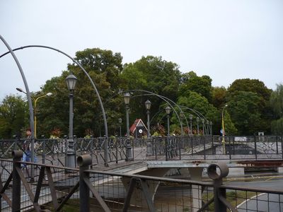 Мост ведет к Городскому парку, который был разбит еще в XVIII веке. Здесь есть большие газоны, детские площадки, пруды с лилиями. В связи с острой нехваткой времени я парк не стал посещать.