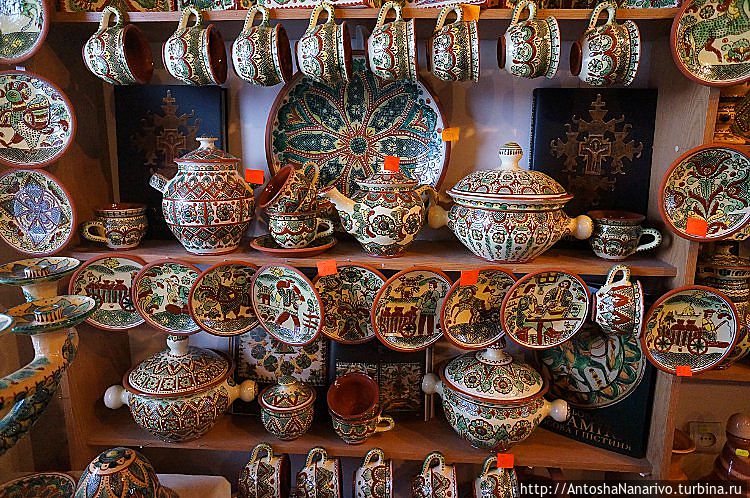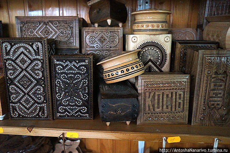 Тут и керамика, и шкатулки, и рушники, и резные тарелки, и пысанки, и топирцы, и безрукавки-кептары, и трембиты и все-все-все, чем земля гуцульская богата, ну кроме, разве что, самых редких вещей, вроде гуцульской волынки. Но при желании и ее найти можно, и я вам волынку эту как-нибудь еще покажу, так же, как и квадратную скрипку.