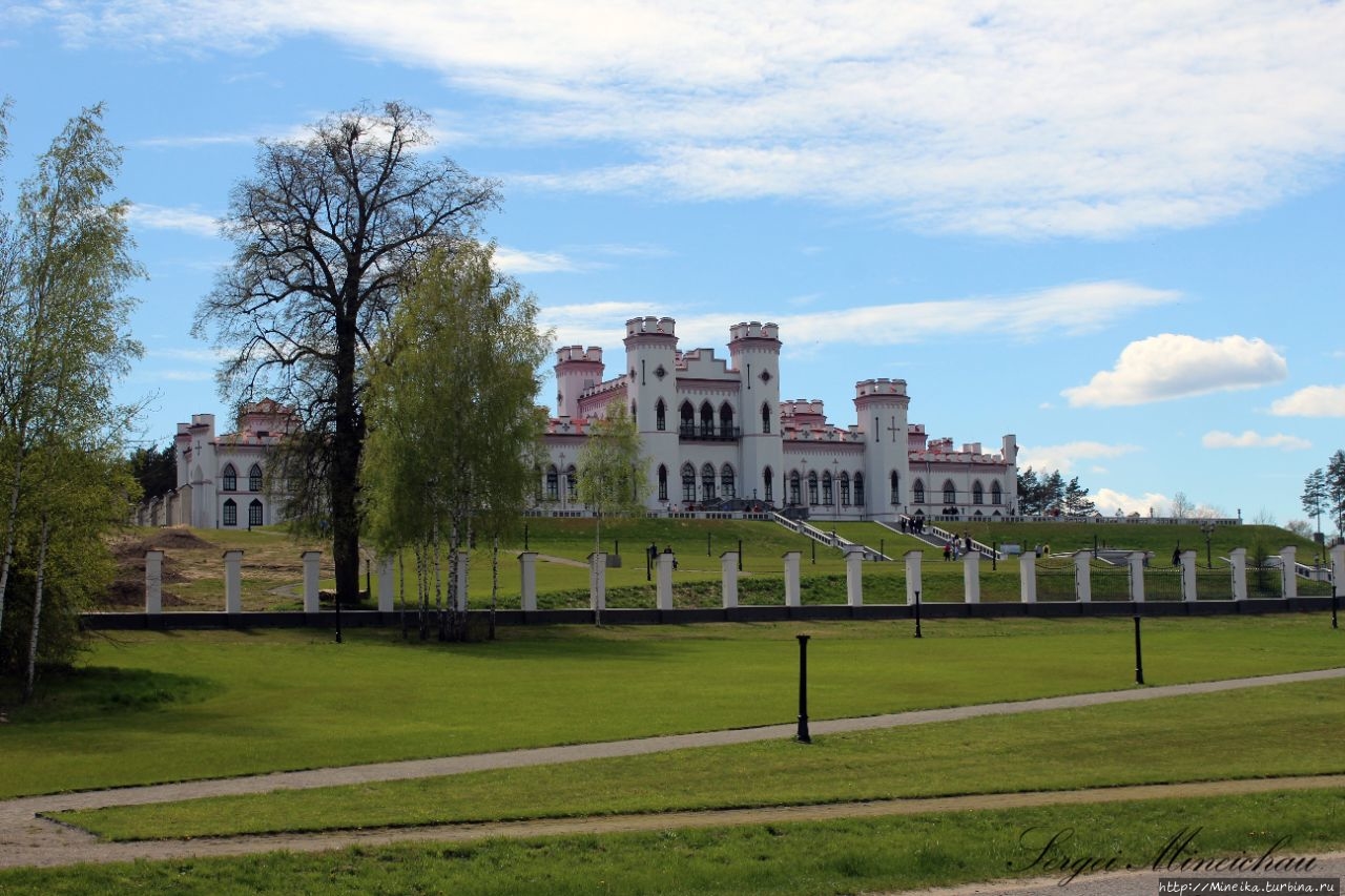 Со ступенек дворца нам открывается живописный вид на искусственные озера и усадьбу Тадеуша Костюшко, соседством с коей очень гордились Пусловские.