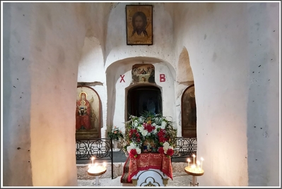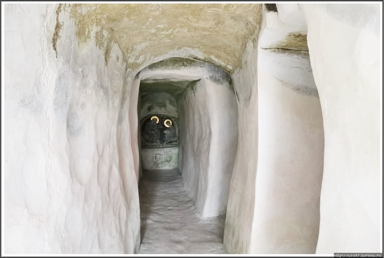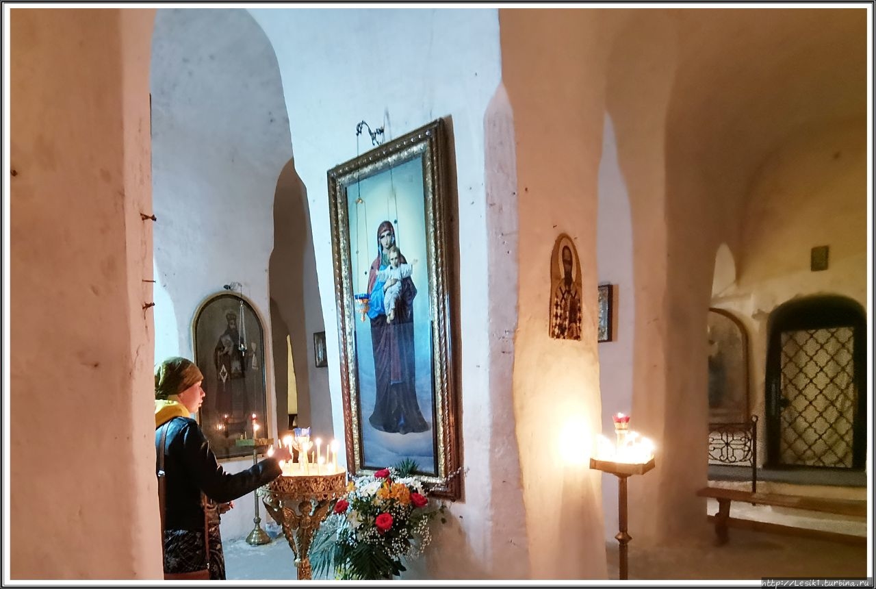 Главной достопримечательностью обители являются уникальные пещерные храмы, находящиеся в толще меловой горы. И именно эти пещеры мы стремились увидеть.