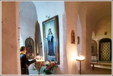 Если в коридоре при достаточном количестве народа свет от свечей позволяет что-то разглядеть, то в самой келье находишься совершенно один. Темнота обволакивает тебя со всех сторон и лишь слабый свет твоей свечи освещает небольшое пространство перед иконами, позволяя остаться один на один с со своими мыслями и покаянной молитвой.