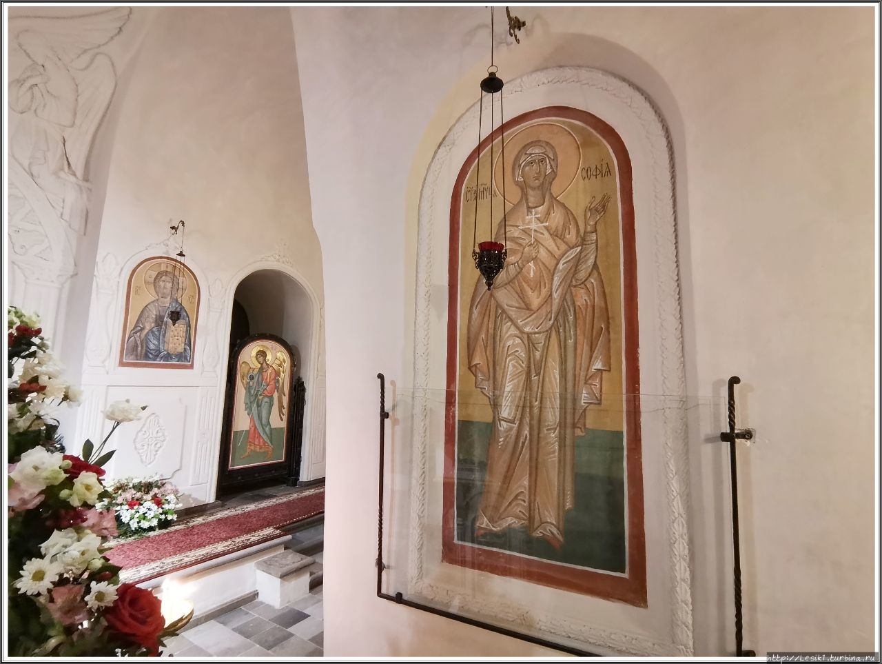 Левый придел освящён в честь святых мучениц Веры, Надежды, Любови и матери их Софии.
