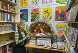 Юля умудрялась на каждом шагу заводить знакомства со всеми встречными-поперечными и не просто знакомиться, а еще вступать в обстоятельные разговоры, вот что значит — настоящий журналист! В тот момент, когда я отвлекся, в поисках хоть какого-то интересного кадра, Юля заглянула в неприметный вагончик, который оказался приходской библиотекой, да необыкновенной, а почти музеем.