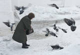 Честно говоря, я начинал расстраиваться, погода совсем не радовала. Мы бродили вокруг храма, в поисках удачных ракурсов, но вдохновение не приходило. Радовались только жирные голуби, когда из дверей храма выходила очередная сердобольная бабушка и густо посыпала снег вкусными семечками.