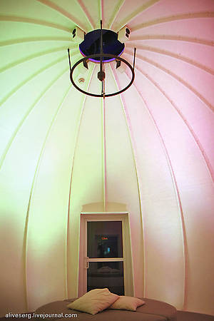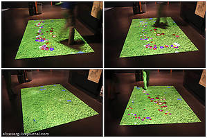 • Это цветовая интерактивная проекция, реагирующая на движение по ней — каждый ваш шаг буквально расцветает. Мелочь, а приятно ))