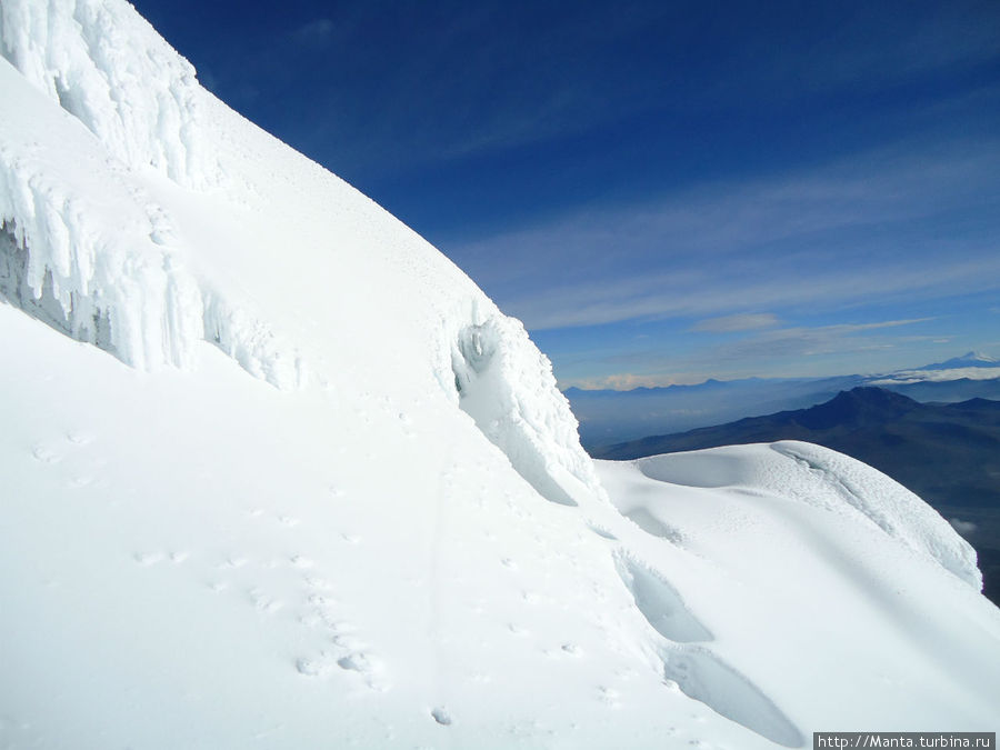 Нам повезло с погодой. Небо было ясным, я во второй раз за все время, что я в Экве, увидела звезды. За все утро небо ни разу не затянулось облаками, и со склона горы мы видели Антисану, Каямбе, Илинисас — почти все самые высокие вулканы Эквадора, которые обычно всегда закрыты облаками.