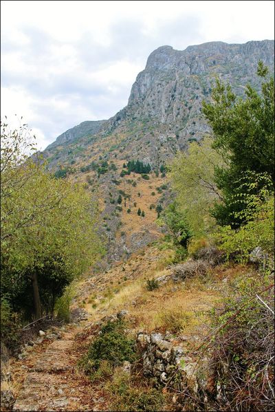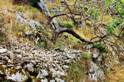Также встречался инжир и кусты плюща. Последние выглядели несколько жалко, вероятно, обрести постоянную опору плющу мешал камнепад, что был не редкостью здесь. Некоторые участки тропы были заметно повреждены, однако пройти по ним можно, главное, не подходить близко к краю.