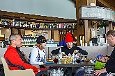 Пробили несколько ресторанов из райдерхелповского обзора. Вердикты не везде утешительные. Знакомство с «Три́кони» не заладилось сразу. Пришли туда днём, заведение пустует, официантки говорят, что у них все столы заказаны. Увещевания, что мы на полчасика пивка попить, их не убедили. Звоните, говорят, бронируйте столы заранее. Лучше за два дня. ЗА ДВА, МАТЬ ТВОЮ, ДНЯ?!! Я в Москве даже в пятницу вечером столы не бронирую, потому что понятия не имею, что я захочу делать через 2 дня. В общем, обиду мы затаили, но приманка сработала. Через день позвонили, забили столик на вечер. Картина та же: народу мало, столы пустые, всех приходящих без записи отсылают на болт. Не знаю, чисто маркетинговый это приход или есть какой-то другой умысел, только ничего сверхъестественного в самом кабаке мы не узрели. Классический европейский apres-ski. Корейка новозеландских (ли?) барашков была суховата, форелька обычная, водка дорогая, а вот соленья и сало выше всяких похвал, особенно домашняя горчица «вырви глаз». В целом, заведение имеет право на существование и будет иметь своих клиентов (понимайте как хотите), но откуда и зачем столько гонора, непонятно.