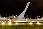 Шоу поющих фонтанов оказалось случается всего раз в день и как-то молниеносно. Пока мы дошли до олимпийкого факела, всё уже закончилось. Поэтому мы просто попили коньяка с видом на стадион Фишт. И наделали классически-идиотских пьяных фото с факелом.