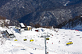 Даже если погода не благоприятствует, вы не останетесь в накладе. Поскольку по правилам олимпийского комитета все соревнования должны проходить на искусственном снегу, на курорте было установлено более 400 снежных пушек. Ещё с этого сезона на «Розе» доступно вечернее катание на нижней части «зеленой» трассы «Б 52» с 19:00 до 23:00. В целом, если отбросить цену на скипасы, курортище всем в пример. Масштабы, инфраструктура, пейзажи, фантазия — всё на пятёрку.