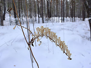Рыбаки что-то пытались достать из под тонкого льда, покрывающего почти полностью вымерзшую лужицу на месте красивого лесного озера.