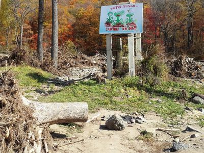 Сама парковка как была, так и осталась на привычном месте. Пострадал лесок между стоянкой и началом тропы на водопады.Именно здесь “наводнением смыло широкую полосу леса”. Кстати, вместе с мусором и следами туристической “цивилизации”. Вода выровняла и покрыла большую площадь мелким камнем, сделав стоянку просторнее и удобнее. А завалы деревьев становятся все меньше на глазах. Видимо, их пилят для расчистки работники лесхоза или на дрова местные жители.