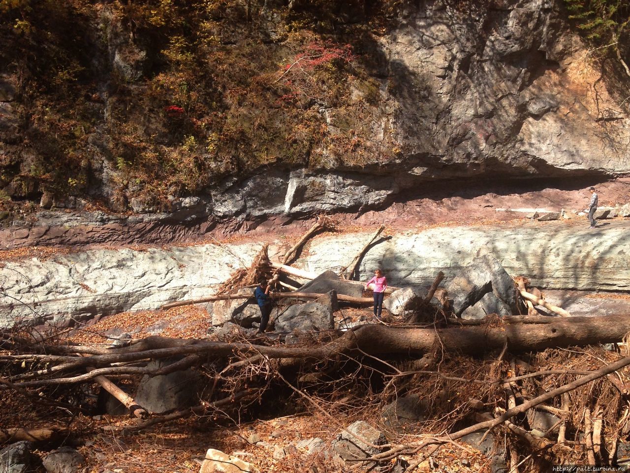 Вода снесла все мелкие и не очень камни, обнажив ровные скальные плиты, удивительно напоминающие асфальтовое покрытие многих наших не главных дорог. При малой воде в ручье эта дорожка-русло приятна невероятно.