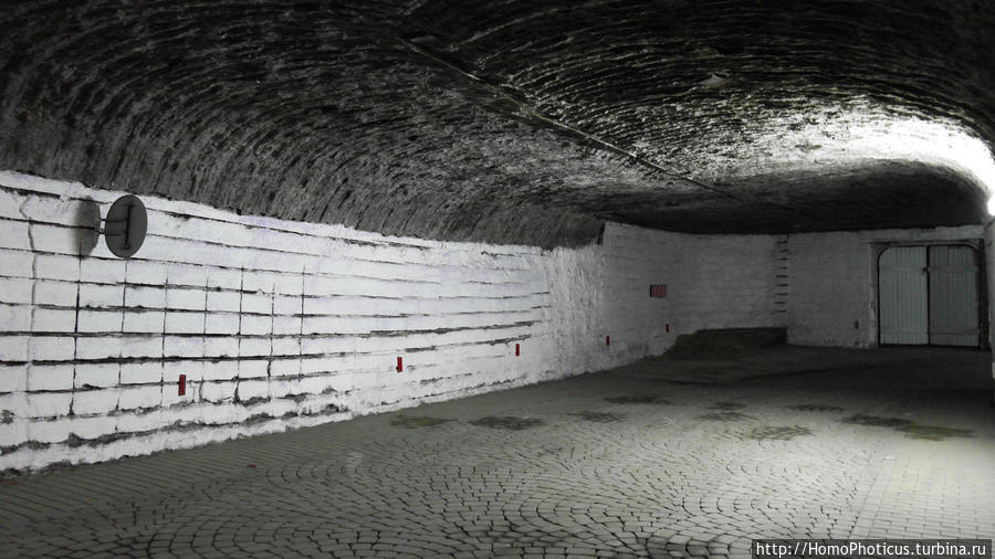 Конечно, построили этот город не гномы, а шахтеры-каменоломы, которые с полтысячи лет добывают местный известняк-ракушечник — котелец. В результате напрорубали более сотни километров длинных тоннелей с почти правильным перпендикулярным расположением "стритов" и "авеню" :) Сейчас в шахтах расположено хранилище для вина, благо температурный режим и влажность как нельзя лучше позволяют сохранять и обогащать вкус и аромат, надо сказать, весьма достойных вин. Часть улиц заставлена бочками, и даже указатели показывают, мол, это пошла улица Каберне:) Кроме того, здесь выдерживаются и игристые вина — считается, что Криковский комбинат шампанских вин — один из немногих на территории бСССР, производящих игристые вина по традиционной технологии Шампани.