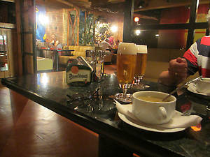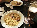 Еда была достаточно простая (мы взяли курицу с рисом и пиво), но сытная и вкусная.