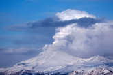 Первым интересным объектом для съемки на нашем пути был извергающийся вулкан Карымский. Он довольно часто выбрасывает паро-пепловые столбы.