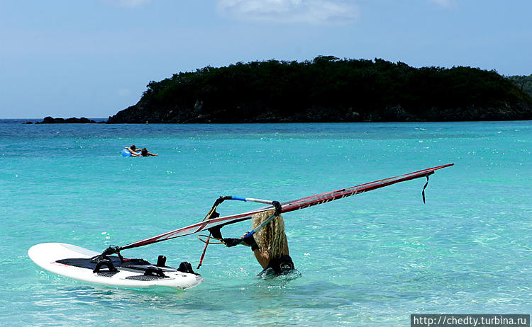 Бухта хороша как базовая. Вдоль пляжа много грилей и столов и мало людей. Если здесь и собирается большая компания то это местные. Как ни удивительно, мы встретили даже русскую семью, которая живет на острове уже больше двадцати лет. Младшее поколение выросло уже здесь. Увидев молодую женщину — "хиспаник", которая поставила кресло посередине парковки и кормила черного ребенка, Димка (естественно на русском языке) начал комментировать ее интеллектуальный потенциал. Достойны ответ (также на русском) показал, что сильно загорелая еврейка вполне может сойти за хиспаник.