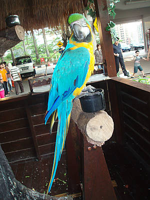 Посетить его, приглашает ярко-синий, говорящий попугай.