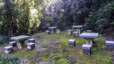 Смотровая площадка оказалась рядом с кладбищем. Я то всё думал, как выглядят китайские кладбища, вот и увидел наконец-то. И даже прошелся насквозь, решив срезать путь по склону горы, спускаясь со смотровой площадки через кушары и паутину. Выжил.
