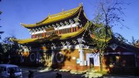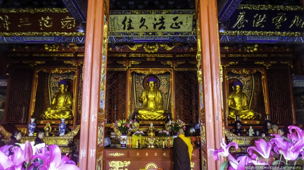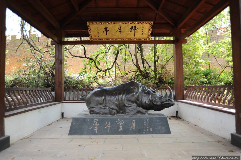 Вход в храм стоит всего 5 юань. Своей историей возникновения он связан с единорогами или носорогами, я так и не понял. А легенда про храм такая. Во время династии Тан (618 — 907), провинция Юньнань была отдельной страной по имени Дали. Однажды два брата королевского происхождения охотились на холмах за пределами Куньмина, они заметили причудливого носорога (или единорога). Надеясь поймать его, они следовали за носорогом глубоко в леса горы Ю'эн, где волшебное животное внезапно то появлялось то исчезало. Когда братья теряли из виду носорога, они видели группу монахов, которые были непохожи на любых других монахов, которых они видели прежде. Когда монахи замечали братьев, они исчезли в облаках, оставив только свои трости воткнутыми в землю. На следующий день эти трости стали бамбуковым лесом. Пораженные братья поняли, что они встретили просветлённых сверхъестественных существ и, чтобы почитать их, они построили Бамбуковый Храм в бамбуковом лесу.