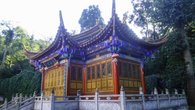 Немного подъехал на автобусе, но по горным дорогам автобусов уже не было. С дороги свернул на тропу и по осеннему лесу дошел до храма. Рядом какой-то безлюдный отель, над ним буддийская ступа в китайском стиле, но путей к ней я не смог отыскать, всё перекрыто, заборы заборы.