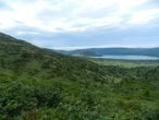 Где-то в обустроенном месте можно купить билет на канатную дорогу, приехать на обзорную площадку на поезде, или на автобусе. Человек заплатил и получил удовольствие — это одни впечатления. Здесь на Кунашире ситуация другая — право на фотосъёмку, как и право на осмотр, ты заслуживаешь ногами. Гора покорена — в этом случае она просто обязана открыть тебе все свои прелести, ибо ты победитель.Достигнув обзорной точки мы увидели теперь уже весь вулкан, или вернее кальдеру — огромную впадину округлой формы с пологими внутренними стенами. Диаметр кальдеры вулкана Головнина – 7-8 км.