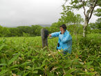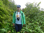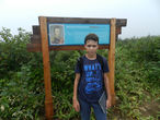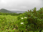 Вскоре деревья полностью исчезают — мы достигли верхней части хребта. Чуть позже выходим на обзорную точку. Жаль, но остров по прежнему во власти тумана, и посему мы не можем достойным образом осмотреть окрестности. В хорошую погоду отсюда виден заполненный озером кратер вулкана Головнина, тогда как в прекрасную погоду можно видеть и Хоккайдо.Зато туман не мешает изучить табличку, где кратко рассказывается о жизни знаменитого русского мореплавателя Василия Ивановича Головнина (1776 — 1831 гг.)