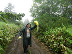 Самое главное — по пути мы потеряли одну машину, в которой сидели 097mcn и Maynur. Связь в этом месте не берёт, стоим, мокнем и ждём. Позже одна из наших машин отправилась назад. У ребят случилась поломка и туристка Maynur, по совместительству автомобилистка с 40-летним стажем, подсказывала молодому водителю, как правильно заливать воду в радиатор, если закипел двигатель (позже они нас догнали).Дождь ни дождь, а на экскурсию идти нужно. Наши проводники заверили нас, что дождь на острове может вдруг начаться и также резко закончиться. От асфальтовой дороги в сторону идёт грунтовое ответвление. Встаём на эту дорогу и движемся вверх.