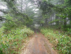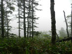 По мере подъёма кустарник исчезает, и на смену ему появляется сосновый лес, разбавленный карликовыми берёзками. Кто-то идёт быстрее, кто-то медленнее, соответственно вся наша туристическая группа по тропе растягивается. Я стараюсь не спешить — изучаю этот диковинный и доселе незнакомый лес. Набравшие капель еловые иголочки слегка дрожат на весу. Куда пойдёт капля? Если выглянет солнце, капля испарится и улетит к своим собратьям на небо, где они образуют новую тучу.... Однако, нет, дождь по-прежнему моросит. На каплю попадают новые капли, вместе они образуют ручеёк — их вектор направленности устремлён теперь к океану.Влажность! Жуткая влажность и духота! Не смотря на дождь, снимаю ветровку и иду дальше в одной футболке. Обтянутые мхом стволы наверняка хотели бы тоже снять с себя летом свои зелёные шубы, но природа не разрешает. Как ласковая мать, она старается теплее закутать своих деток.