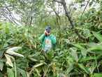 Бамбук и богульник, перемешавшись, вроде как и стоят рядом, но между ними идёт яростная борьба, и ни чьи копи в небо здесь не вонзаются. Растения мешают друг другу, тратя на это огромные силы. Где-то наступает одна армия, где-то другая, и если, поднявшись на бугорок, приглядеться, можно проследить за ходом баталии. Бамбук растение мощное, но богульник за себя постоять тоже может. Мёд богульника ядовит, и может быть использован лишь самими пчёлами для развития потомства. Забегая вперёд, отмечу, что по мере подъёма богульник-таки исчезает, уступая жизненное пространство бамбуку. Исход их битвы может определить климат — чем холоднее, тем больше шансов у бамбука.