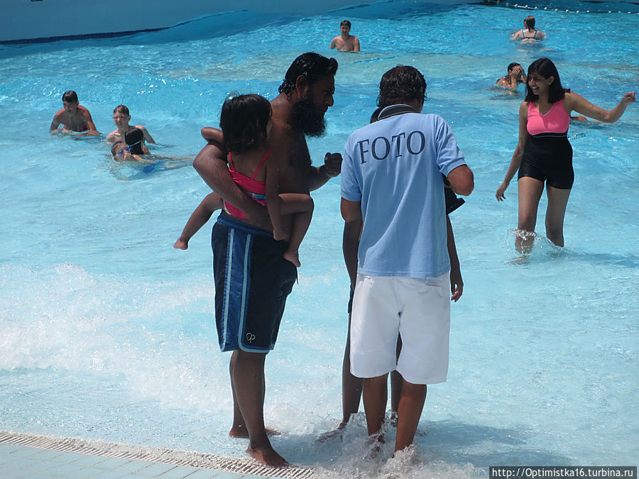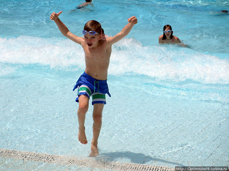 В двенадуцать часов было развлечение: в одном из бассейнов пустили волну!