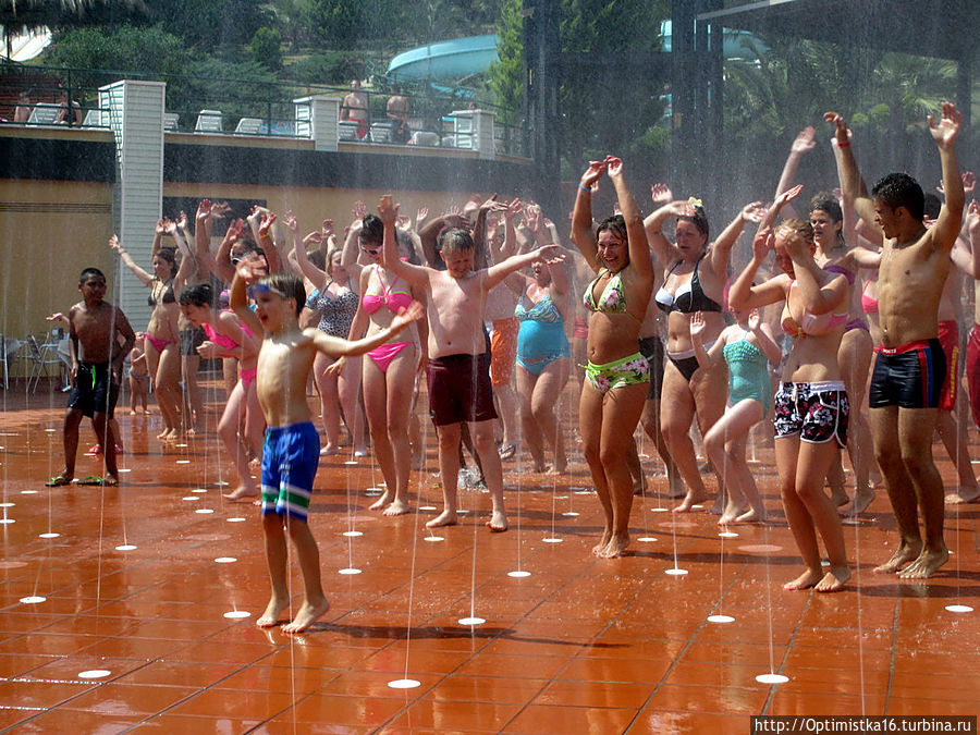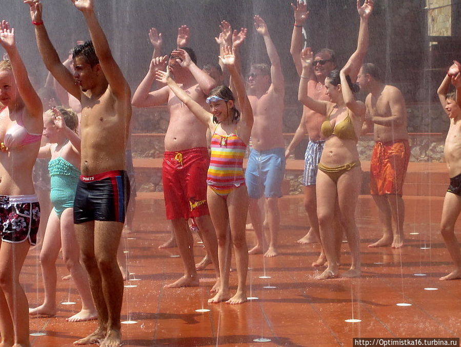 Но это за отдельную плату, если я не ошибаюсь, 37 турецких лир. Мы не пошли. Много раз были на таких шоу в других странах, например в Испании.А в три часа устроили танцы в брызгах фонтанчиков. Под музыку на сцене "зажигали" две симпатичные девушки,