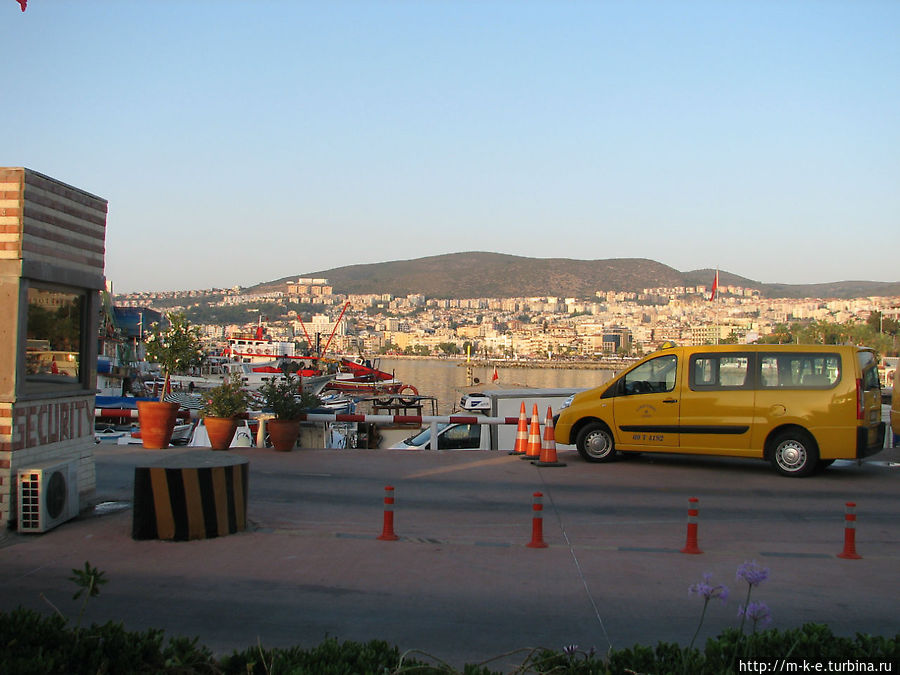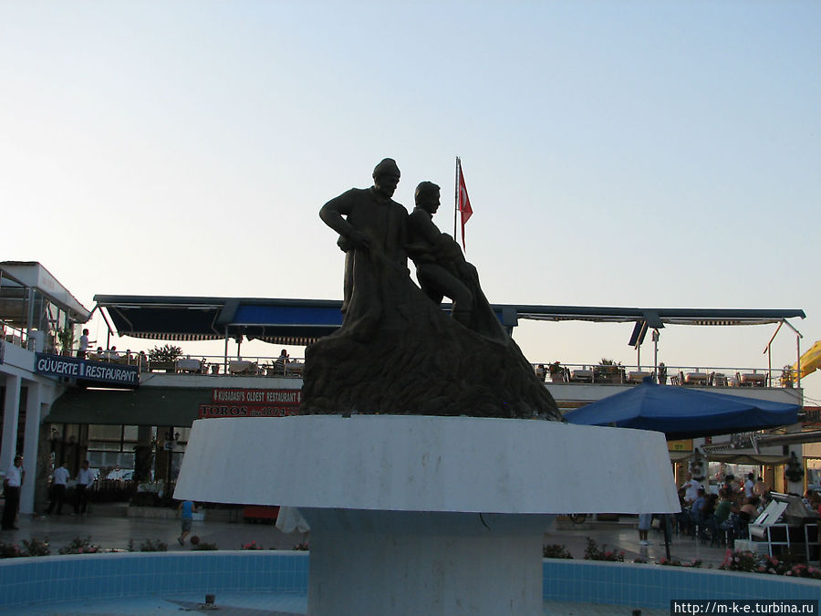 Сразу после караван-сарая попадаем на набережную города. Здесь у моря находится торговый центр с множеством ресторанов с видом на море. Отсюда хорошо виден птичий остров главная достопримечательность города. Свое название остров получил из-за большого количества птиц, которые прилетали сюда во время сезонных миграций. В османский период имя Кушадасы перешло к городу, а остров получил новое название – Гюверджин, что означает Голубиный.