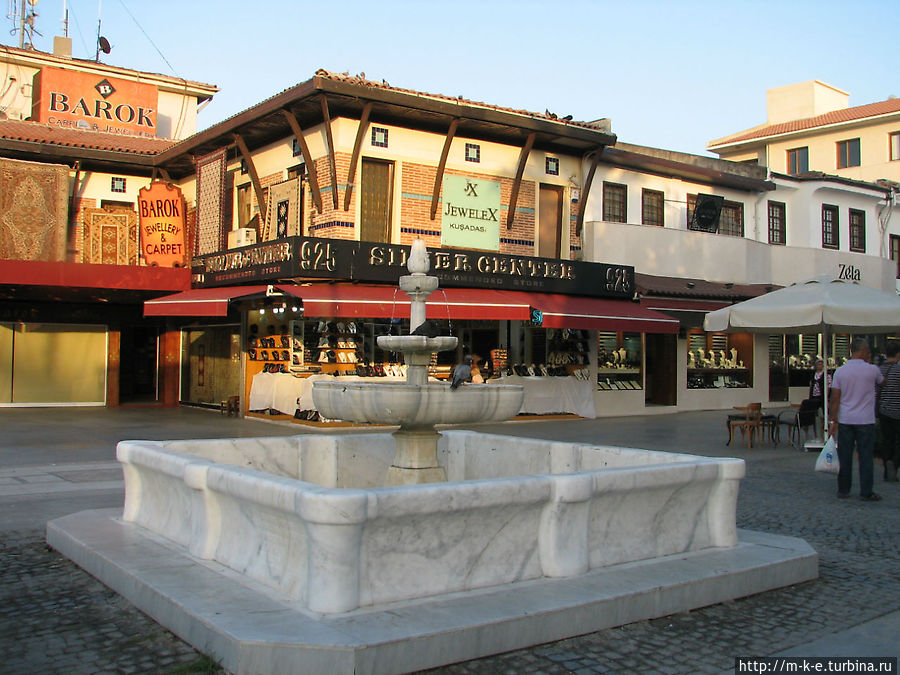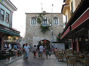 В город Кушадасы мы приехали к вечеру. Пока поселились в отель, пока поужинали и на прогулку осталось совсем мало времени, да и после дневных впечатлений от Эфеса большого желания изучить город практически не было. Ограничились мы небольшой прогулкой по пешеходной улице города. Носит она название Барбаросс Хайреттин бульвар и берет свое начало от небольшой каменной башни , оставшейся от древних стен города.