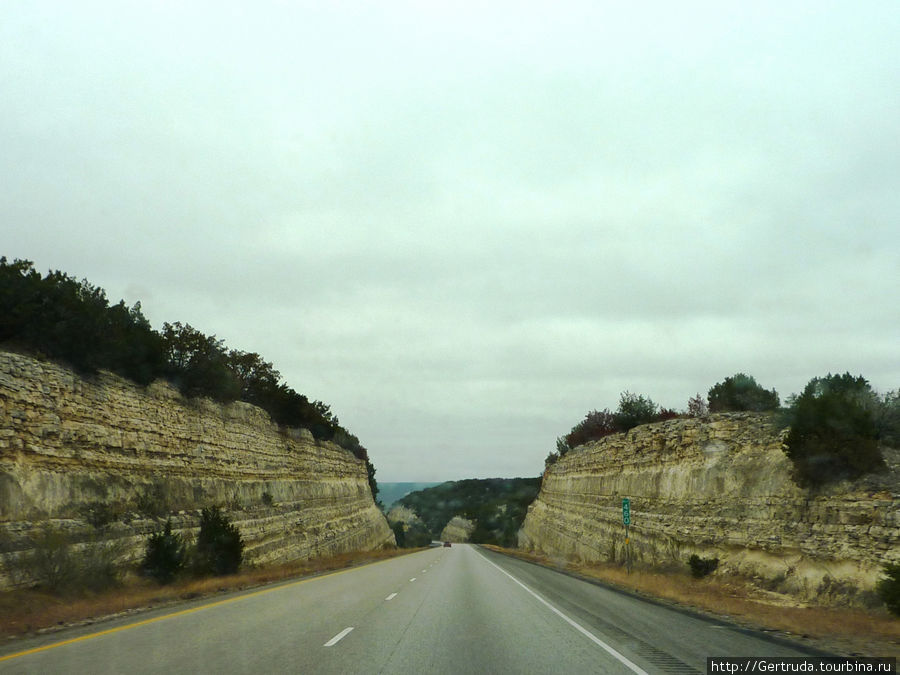 Зато какие великолепные пейзажи неслись нам навстречу! К западу от Сан Антонио располагается плато Эдвардс, с высотами до 1500-1700 метров над уровнем моря, сложенное премущественно известняками. Наш хайвей «десятка» как будто разрезает плиты, по обе стороны дороги наблюдаем смятые в складки горные породы, гигантскую работу матушки –природы. Красота!