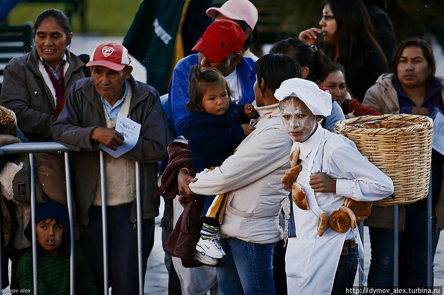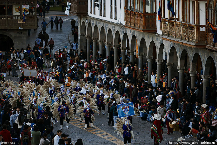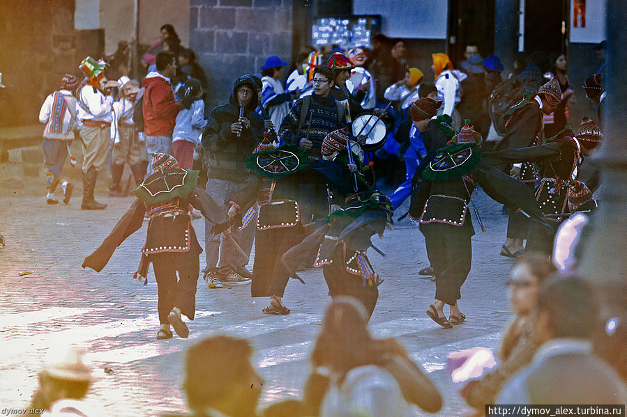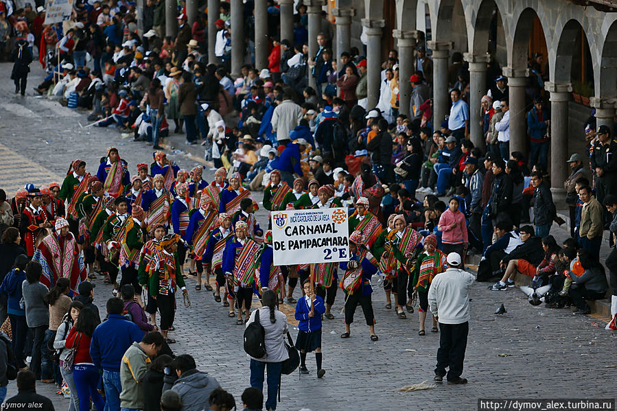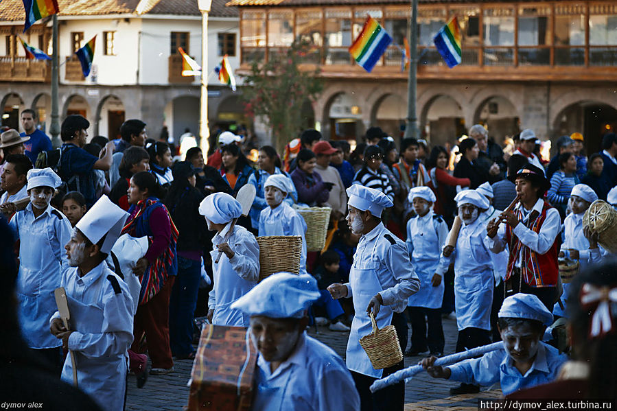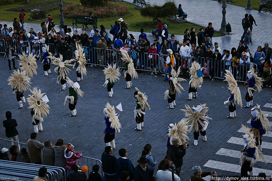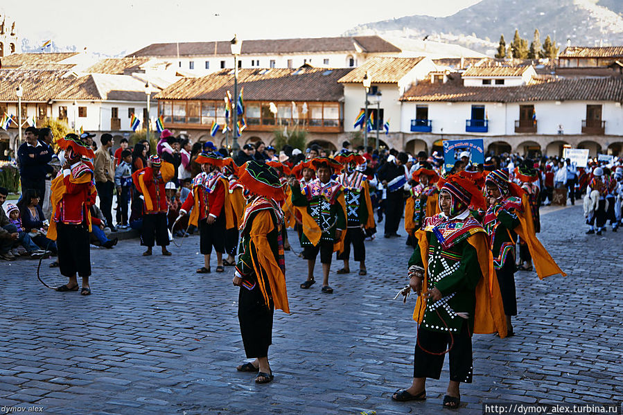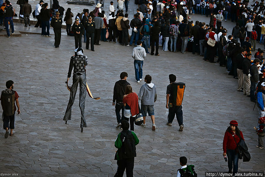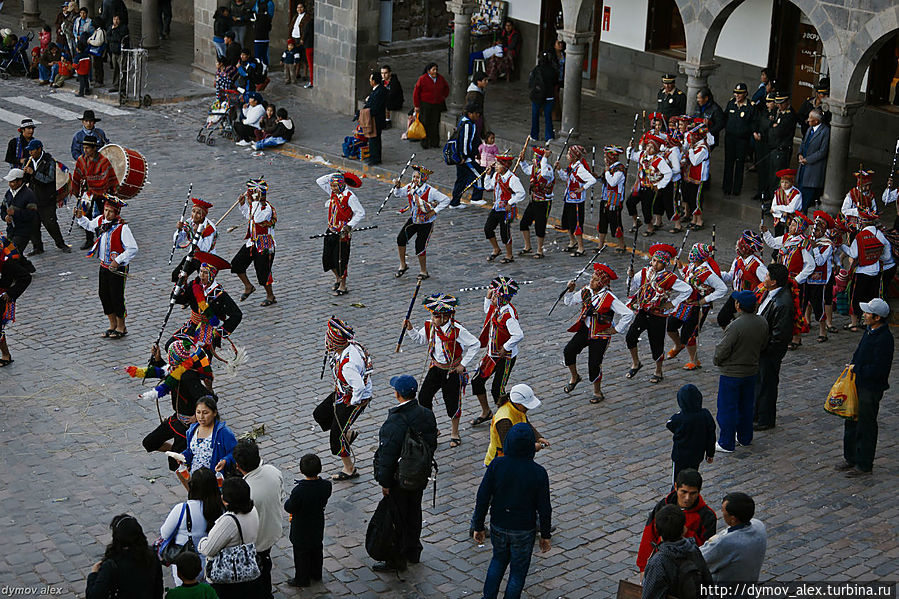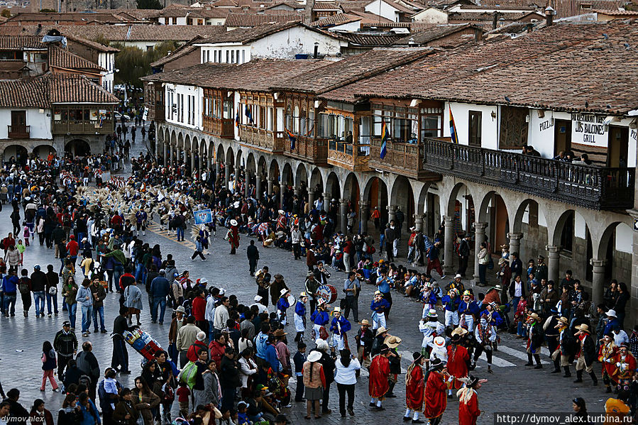 Как и в почти все остальные дни, что мы были в Куско, на главной площади мы застали какой-то парад. Каждый из моих знакомых, бывших в этом городе, утверждал, что ему повезло и он попал на тот или иной праздник. На самом деле, в Куско попасть на праздник не проблема, проблема на него не попасть. Создалось ощущение, что праздники на главной площади проводятся 6 раз в неделю, не меньше. И каждый раз на празднике присутствует толпа туристов и толпа питающихся туристами продавцов всего, чего угодно.