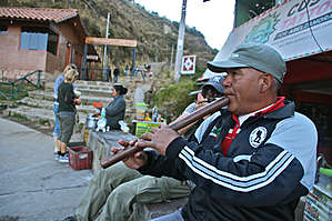 Нашим вниманием же практически мгновенно завладел музыкант, который играл поочередно на нескольких инструментах. Мы присели рядом с ним и довольно долго слушали как эти звуки "андской музыки" гармонируют с горами и с нашим внутренним мироощущением слившись воедино в это мгновение.