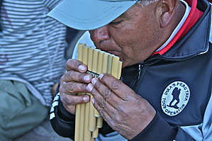Кроме кены нам поиграли еще и на антаре. Это тоже флейта (только однорядная многоствольная) сделанная как правило из тростника. Размеры трубок специально делаются разной длины, что влияет на глубину звука. Играют на ней очень активно быстро переходя на одном выдохе от одной трубки к другой...