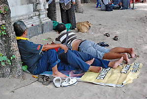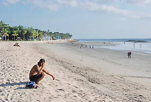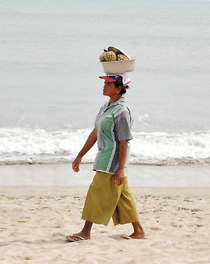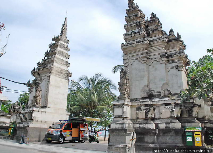 Вход на пляж Куты выполнен в традиционном балийском стиле.