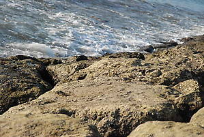 Во время прилива это пространство (между камнями и берегом) заполняется водой. Хотя и не глубоко, может по пояс.. Вот на этом снимке видно, как начинаются волны встречаться....