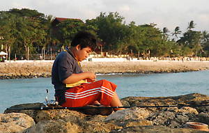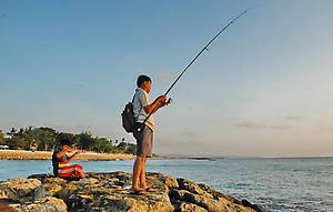 На камнях удобно ловить рыбу и любоваться закатом.