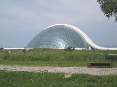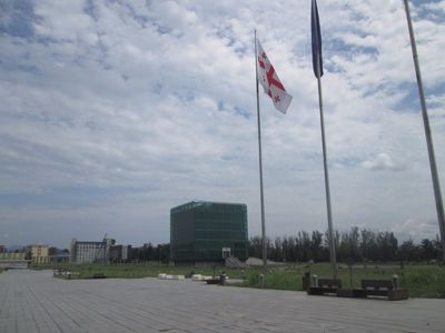 Даже не знаю как это назвать. Сначала в этом парке стоял большой монумент в память о погибших в годы ВОВ, а в 2009 году что ли Мишико, видимо, после плохого сна или приема очередной дозы решил его взорвать и построить парламент. Вы в какой цивилизиованной Швеции , Японии или Канаде такое видели? Что-то мумба-юмбой попахивает и постсоветской дурью, когда бывший комсомолец начинает с "Совком" бороться, что же он себя-то не взорвал?
