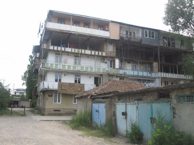 Вид на дома на окраине Кутаиси. Видимо около 1980 года построили, дальше город вширь уже не рос, СССР развалился и люди побежали куда глаза глядят