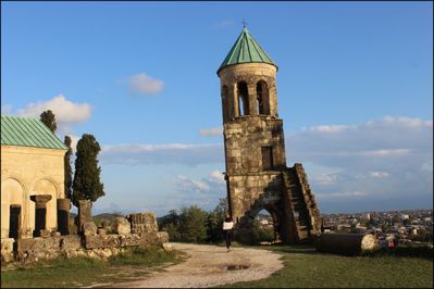 Над городом, на возвышении парит храм Собор Баграта или просто Баграти. Это очень яркая доминанта в Кутаиси — красивую бирюзовую крышу видно практически из любого места города, (недаром наше жилье называлось Panorama, — Баграти днем и ночью смотрит прямо в окно).